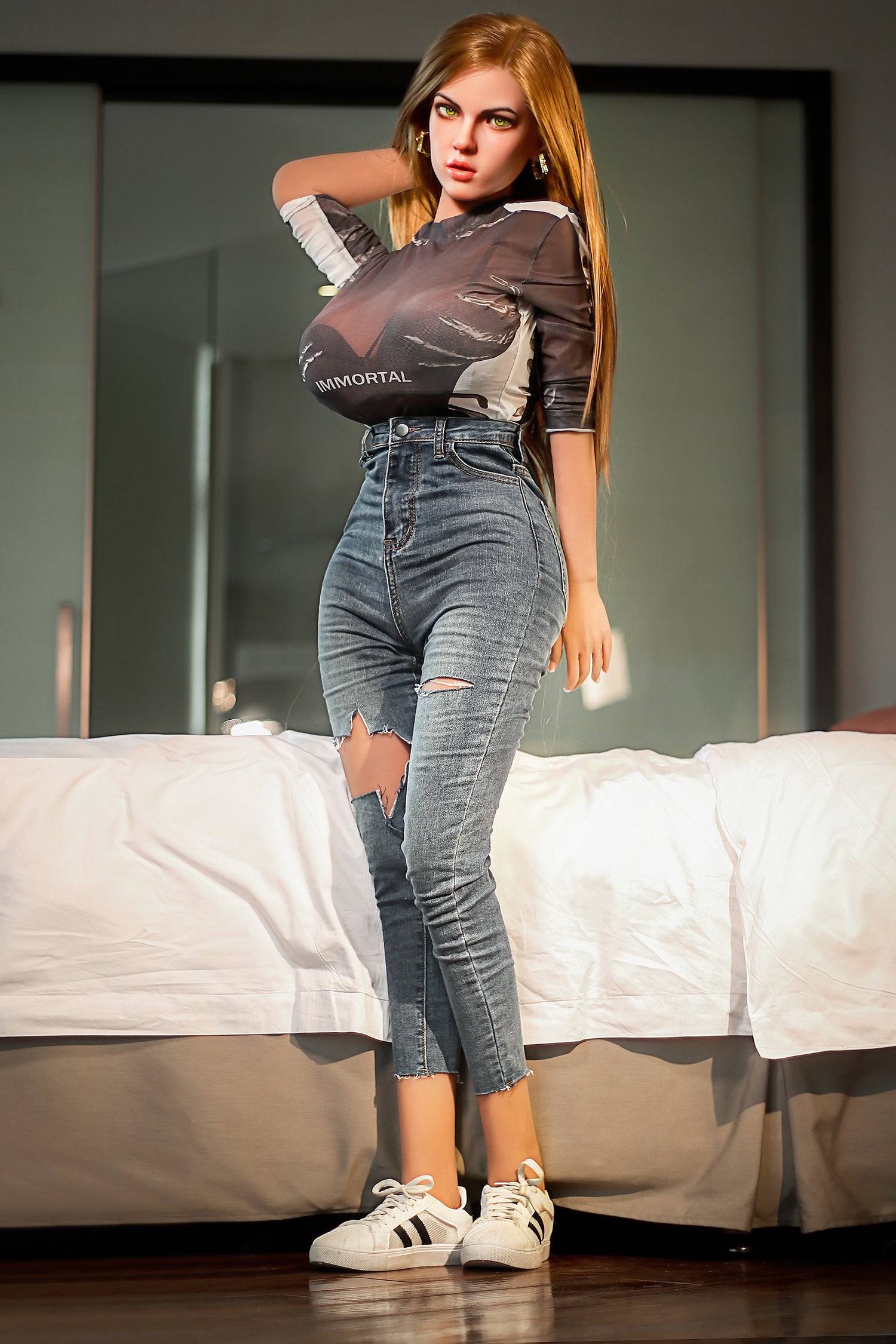Edna is a hybrid doll with silicone head and TPE body. SYdoll specializes in creating realistic and cost-effective dolls with many different options to choose from. All dolls by SYdoll are made out of high-quality medical grade silicone or TPE. You can read more about SYdoll and all the options here.